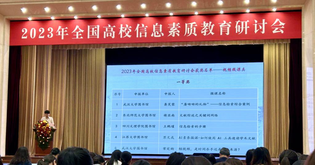 本次研讨会面向全国公开征集信息素质教育案例、微课视频、论文以及教材,经专家评审组评定,最终有138份优秀作品入选,其中微课视频5个一等奖。