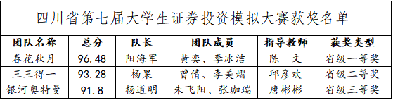 数学学院师生在四川省第七届大学生证券投资模拟大赛中荣获佳绩