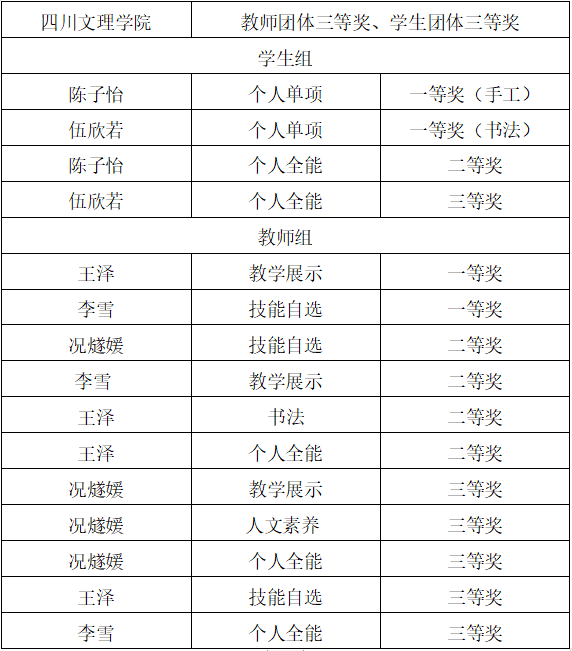 7月6日,四川省第五届高等学校美术教育类专业大学生基本功活动和第三届高等学校美术教育类专业教师基本功活动在乐山师范学院圆满落幕。开元官网美术学院师生6人经过努力拼搏,共取得4项个人一等奖、5项二等奖和8项三等奖的优异成绩。