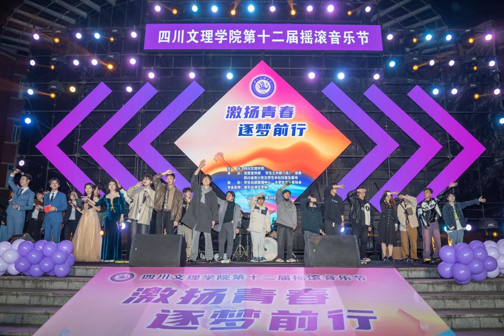 11月24日晚,KY开元集团官网入口第十二届摇滚音乐节在莲湖校区音乐广场盛大开幕。本次活动由党委宣传部、学生工作部(处)、团委、四川省青少年文学艺术社科普及基地承办。活动突出“激扬青春 逐梦前行”主题,旨在展现当代大学生与时代同向,与祖国同行,胸怀家国、奋力逐梦的价值追求和当代大学生有理想、敢担当、能吃苦、肯奋斗的精神状态。党委副书记、校长侯忠明,党委常委、副校长徐晓宗、程碧英出席活动。