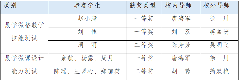 5月17日至20日,2024年数学微格教学论坛暨第十三届高校数学师范生教学技能竞赛与交流展示活动在广西师范大学落下帷幕,本次大赛由中国教育技术协会微格教学专业委员会主办、广西师范大学数学与统计学院承办,来自华中师范大学、陕西师范大学、西南大学、四川师范大学等在内的90所院校1611名选手参加比赛。开元官网数学学院学生通过初赛、决赛选拔,在数学专业教师和校外兼职导师的协力指导下,在微格教学技能竞赛中,荣获一等奖2项,二等奖1项;在微课设计能力测试中,荣获一等奖1项,二等奖1项。KY开元集团官网入口数学学院荣获优秀组织单位称号。