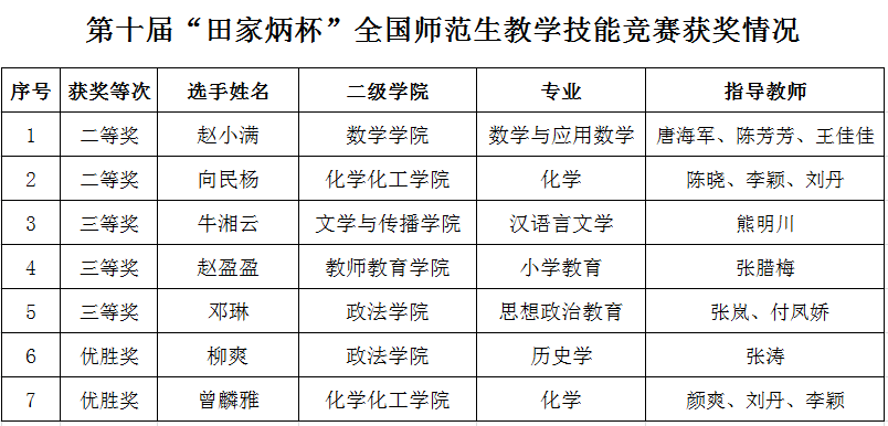 近日,第十届“田家炳杯”全国师范院校师范生教学技能竞赛结果公布,开元官网学生共获二等奖2项、三等奖3项、优胜奖2项。