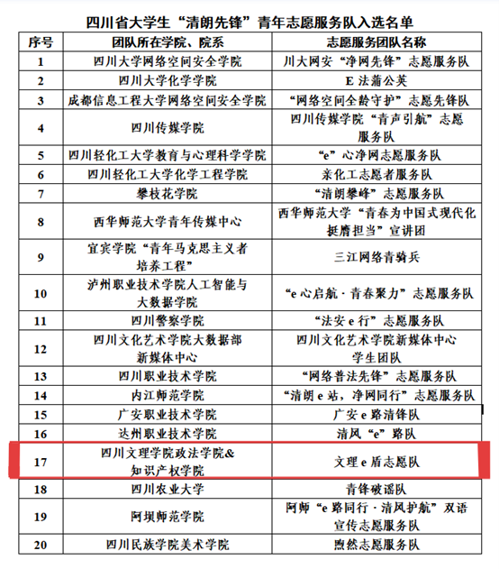KY开元集团官网入口政法学院&知识产权学院“文理e盾志愿队”成功入选四川省“清朗先锋”青年志愿队,这不仅是对开元官网志愿服务工作和网络素养教育的充分肯定,更赋予了学校青年志愿服务工作新的使命与责任。下一步,学校将以此次获评“清朗先锋”志愿服务队为契机,始终坚持以习近平新时代中国特色社会主义思想为指导,紧扣“立德树人”根本任务,持续深化网络素养教育体系建设,着力提升学子信息甄别、风险防范能力。同时,学校将进一步扩大青年志愿服务覆盖面,通过典型引领、活动赋能等方式,号召更多学子加入志愿队伍,以实际行动践行青年担当,推动学校志愿服务工作与育人工作再上新台阶。