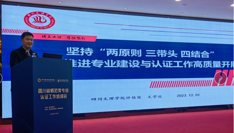 近日,由四川省教育厅主办,四川省教育评估院、绵阳师范学院承办的四川省师范类专业认证工作培训会在绵阳召开。副校长程碧英带领评估处、教务处、相关二级学院负责人、专业负责人一行7人参加会议。