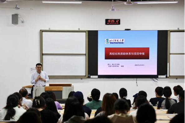 4月22日晚,四川师范大学经济与管理学院院长、博士生导师郑涛教授于莲湖东区A318作《高校社科资助体系与项目申报》学术讲座,系统输出了前沿申报策略与实战经验,不仅为科研团队搭建了系统化的申报方法论框架,更通过案例拆解与难点突破,有效解决了申报过程中的共性问题。