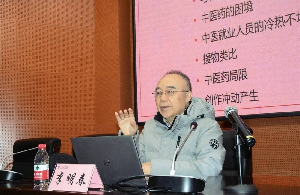 分享会上,李明春从“由把脉引起、当下医界尴尬、中西医的相辅相成、饱满的文学样本、突破和创新”五个方面分享了《天下国医》创作经历、创作感受、创作思考。介绍了中医文化教育的疏忽、中医药的困境、中医就业的冷热不均、中医药的局限、中医的博大精深及中西医的相辅相成。着重从“人、文、情、理”四方面介绍了本书的创作构思与人物塑造,并介绍了本书创作中所作突破与创新,如结构的整体性与碎片化、议论的大量采用、多视角转换、多重叙事手法糅合等。